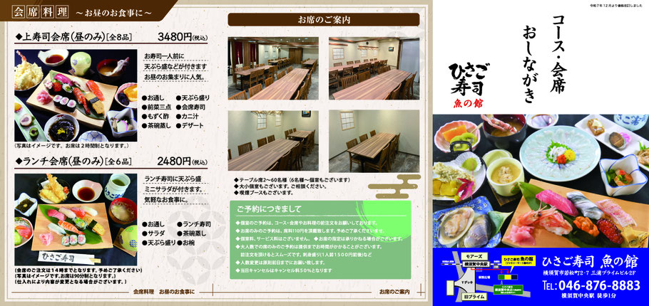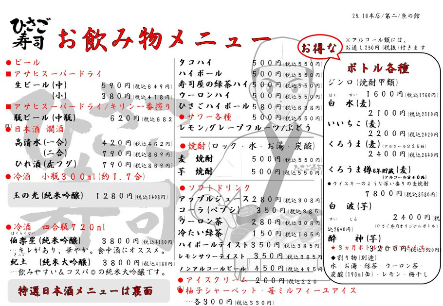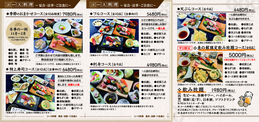 ◆税込5000円で飲み放題付のコース始めました!(ひさご寿司魚の館限定)