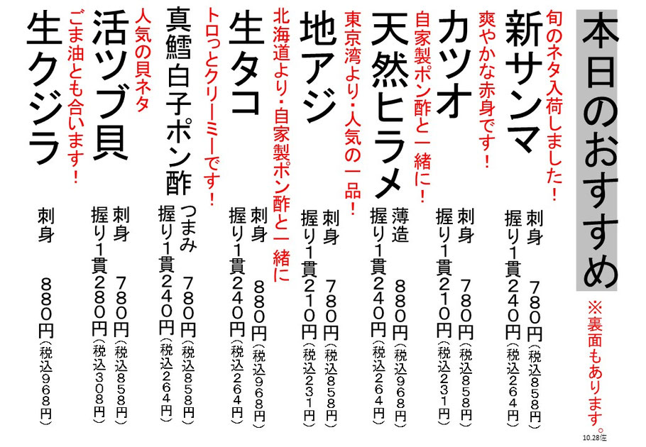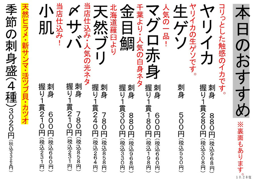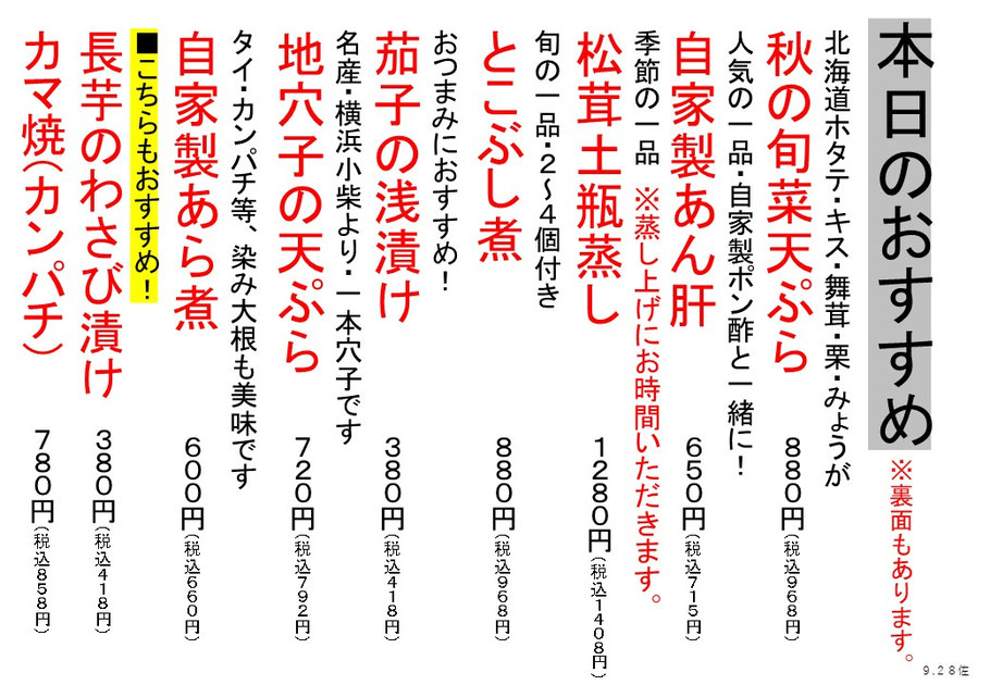 出前メニュー(本店・第二・横須賀中央店)