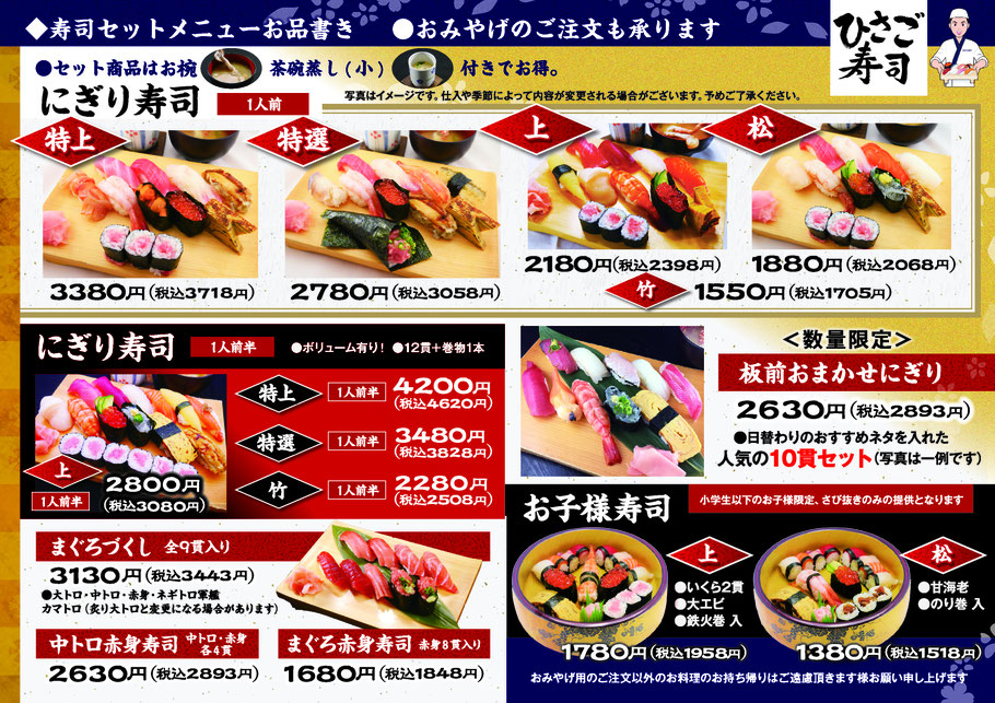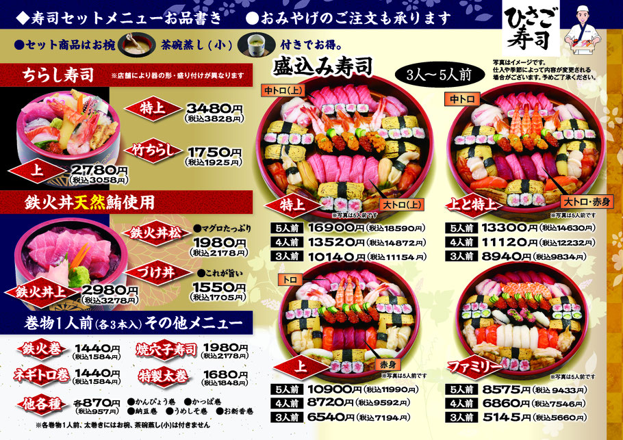 セットメニュー(ひさご寿司本店・第二ひさご寿司)